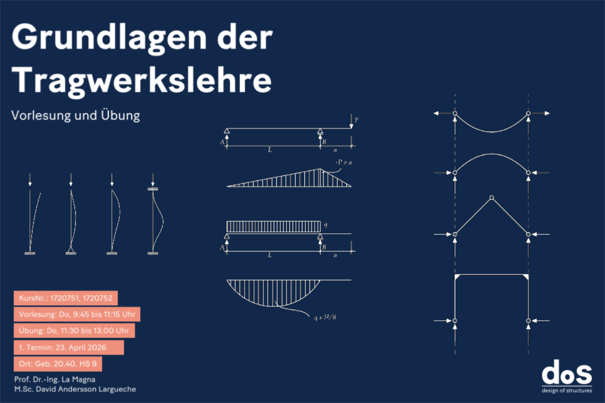 Es werden die grundlegenden und allgemeinen Prinzipien des Verhaltens von Baustoffen und des Tragverhaltens vermittelt, denen Bauwerke ausgesetzt sind und denen sie tragen müssen. Mathematische und physikalische Grundkenntnisse werden auf die Erfassung und Beschreibung der Lastabtragung in Bauwerken angewendet. Es werden die Grundbegriffe der Baustatik behandelt, die in ihrem Wesen eine Zuordnung der Physik zur Geometrie darstellen und über die Physik einen direkten Bezug zur gebauten Umwelt haben. Es wird ein Überblick über den räumlichen Aufbau einfacher Tragwerke gegeben und Kenntnisse über die Funktionszusammenhänge der elementaren Grundlagen für die praktische Anwendung bei der Bemessung von Tragwerken vermittelt.