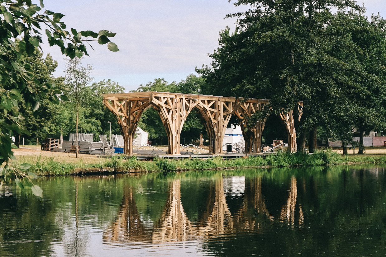 ReFrame is a modular structure that shows how reclaimed timber can be given a second life through digital design and robotic fabrication. It highlights the structural potential and distinct histories embedded in reclaimed timber, showing how it can turn reclaimed timber from a low-grade waste stream into a valuable resource for construction.